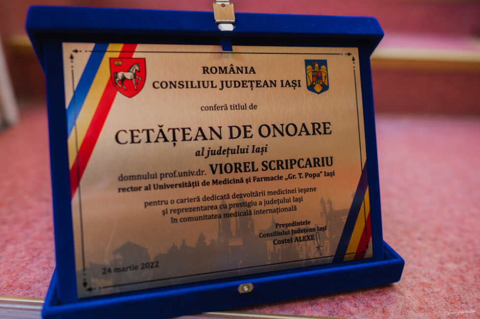 Aula „George Emil Palade” a Universității de Medicină și Farmacie Grigore T. Popa din Iași a găzduit joi, 24 martie a.c., o întâlnire între rezidenții din anul I ai UMF Iași și doamna Ligia Deca, Consilier Prezidențial pentru educatie și cercetare și coordonator al proiectului România Educată. La eveniment au participat primarul Iașului, domnul Mihai Chirica, conducerea UMF Iași, precum și manageri ai spitalelor ieșene, precum și domnul Costel Alexe, Consiliului Judeţean Iași, care i-a înmânat rectorului Universității, prof. univ. dr. Viorel Scripcariu, titlul de cetăţean de onoare al judeţului, pentru întreaga sa activitate în domeniul medical şi în domeniul pregătirii viitorilor profesionişti din medicină.