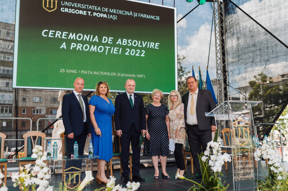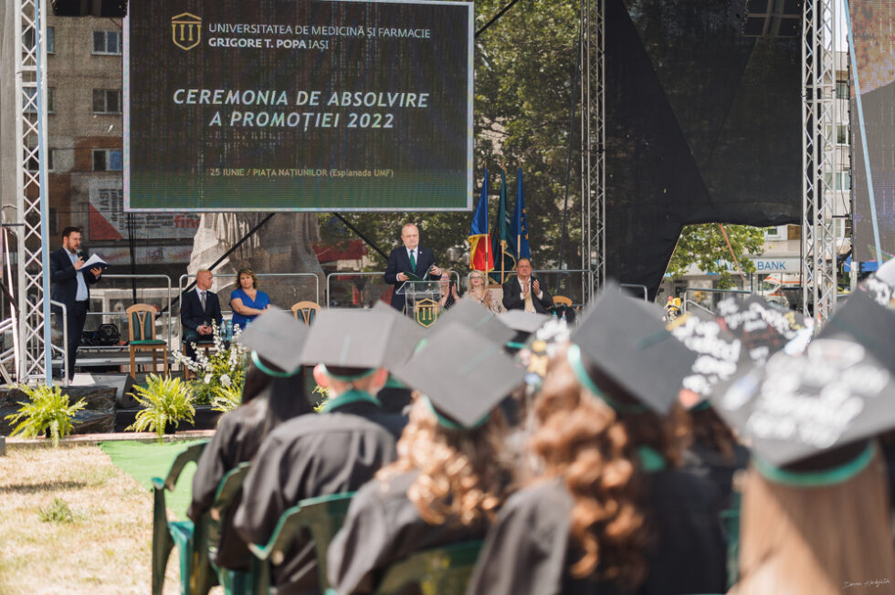 „Sunteţi prima generaţie de absolvenţi care a trecut printr-o pandemie, de la începutul şi până la sfârşitul ei. Am descoperit şi experimentat împreună o nouă formă de educaţie – învăţământul 100% online, cu avantajele şi neajunsurile lui. Alături de profesorii dumneavoastră, aţi dovedit o impresionantă capacitate de adaptare pentru care vă apreciez şi vă mulţumesc încă o dată.”, a transmis, într-un discurs emoționant, rectorul Universității de Medicină și Farmacie „Grigore T. Popa” din Iași, promoției 2022 a UMF Iași – „poate cea mai curajoasă promoție din ultimii ani, poate cea mai pregătită să facă față provocărilor ce vor veni”, cu ocazia Ceremoniei de absolvire, o sărbătoare a succesului de care se bucură atât absolvenții, cât și părinții acestora. Evenimentul s-a desfășurat în Piața națiunii, de-a lungul întregii zile de sâmbătă, 25 iunie – „ziua în care suntem cu toții mândri de reușita voastră: profesorii, părinții, prietenii. Este ziua în care concurența din timpul anilor de studiu a încetat și a lăsat loc doar prieteniei.”, după cum a descris-o rectorul Universității.