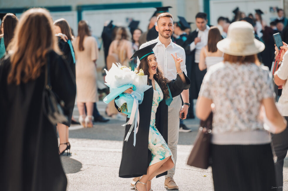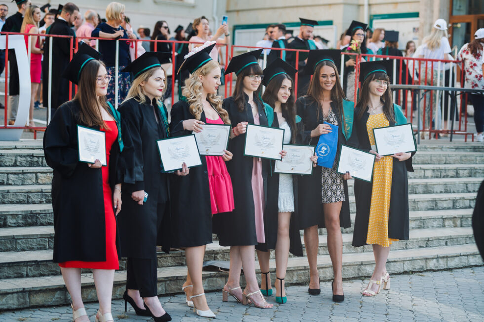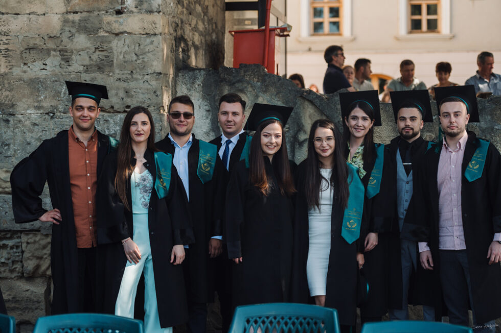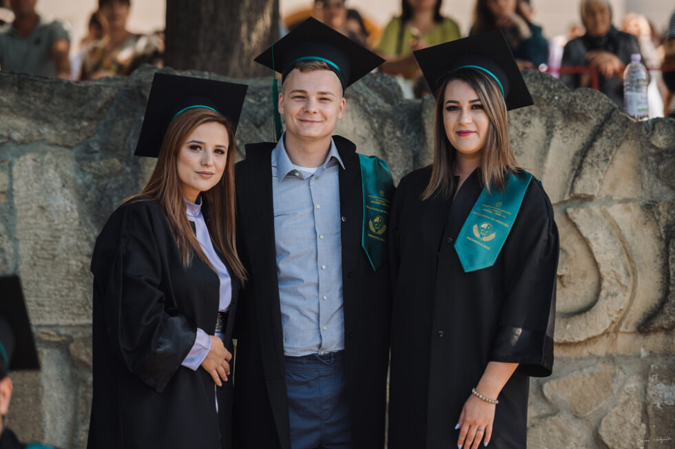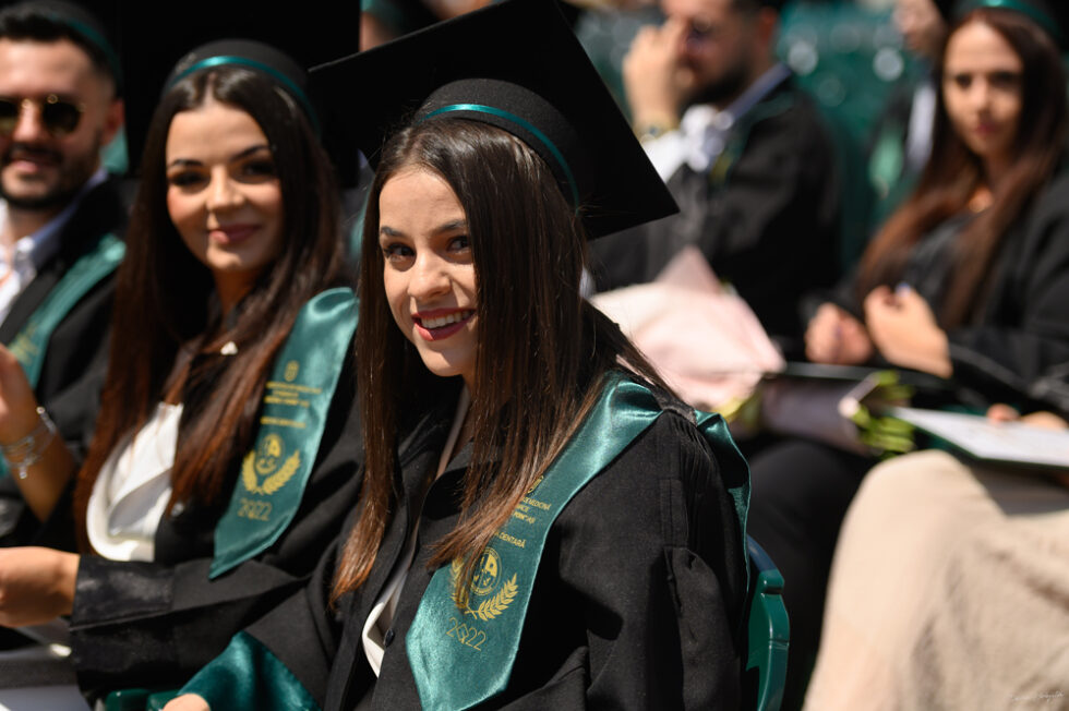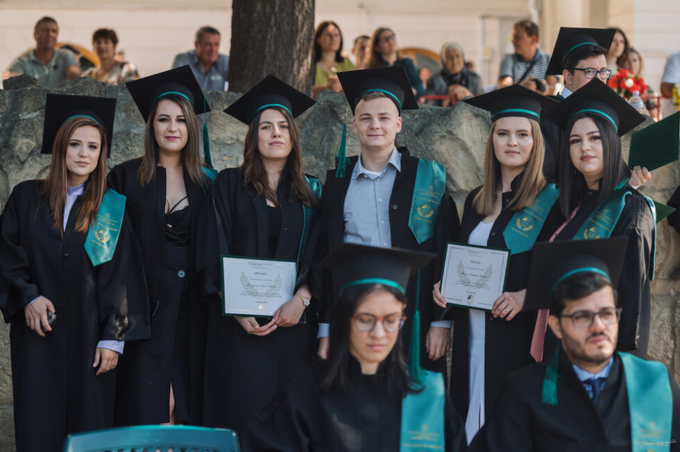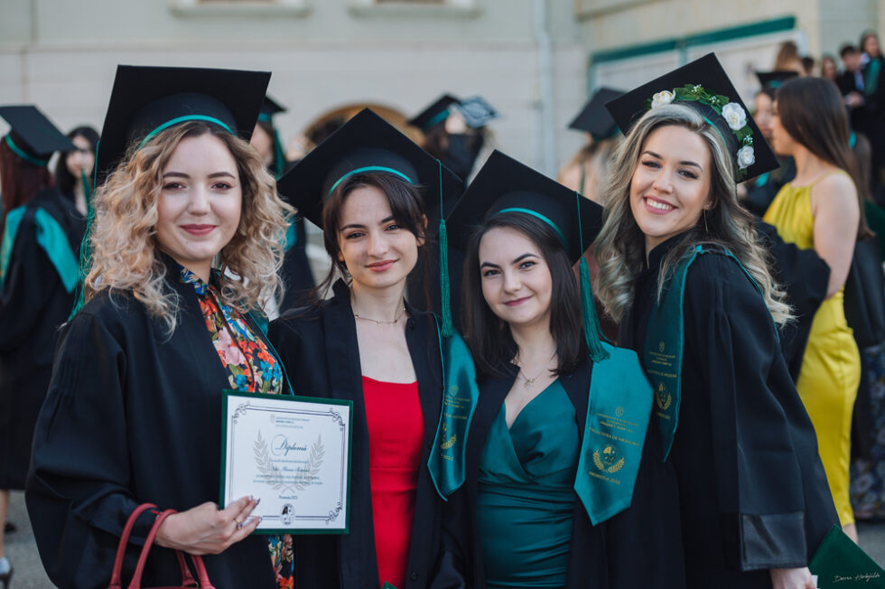 „Îmi aduc aminte că la prima întâlnire, pe care am avut-o acum trei ani, v-am spus că atunci când veți termina, am să am onoarea să fiu colegă cu voi, fiind fizioterapeut. Iată că acea zi a venit, azi nu vă mai spun dragi studenți, ci dragi colegi și vă doresc tot binele din lume”, le-a transmis celor 109 de absolvenți ai specializării Balneofiziokinetoterapie și recuperare decanul lor de promoție, conf. univ. dr. Mariana Rotariu.