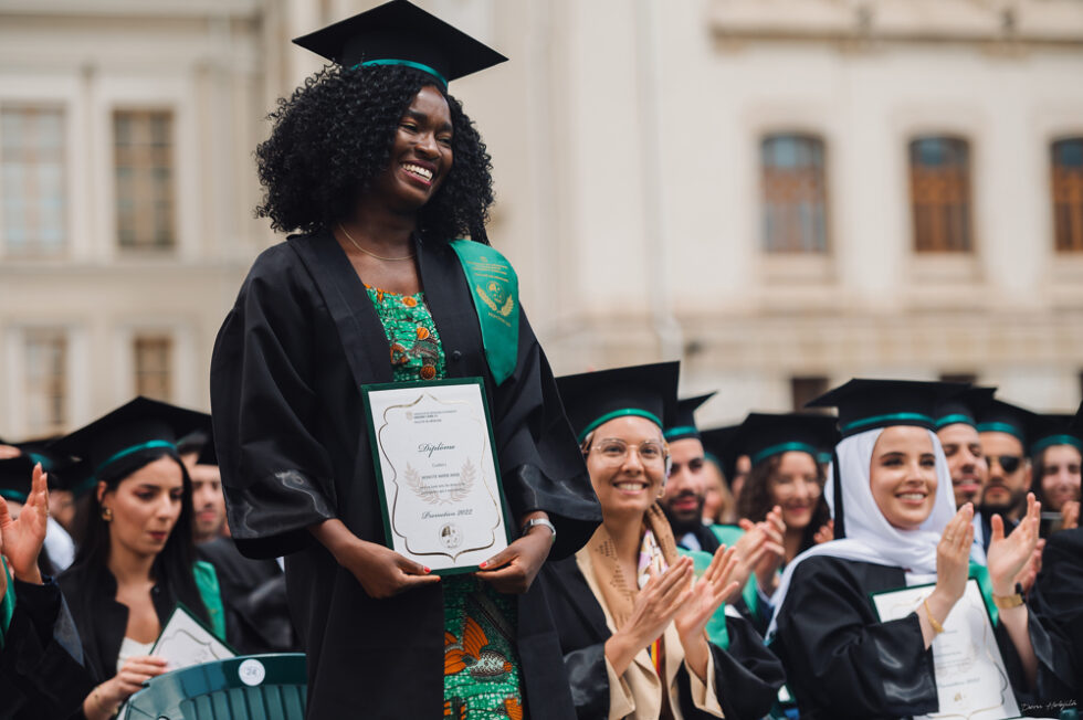 „Félicitations futures médecins! Notre travail acharné a finalement porté ses fruits et nous sommes enfin prêts à franchir la prochaine grande étape de notre vie. Je suis honorée d’être devant vous aujourd’hui à l’occasion de nos derniers adieux aux études de médecine à l’UMF, avant que chacun aille briller aux quatre coins du globe.
