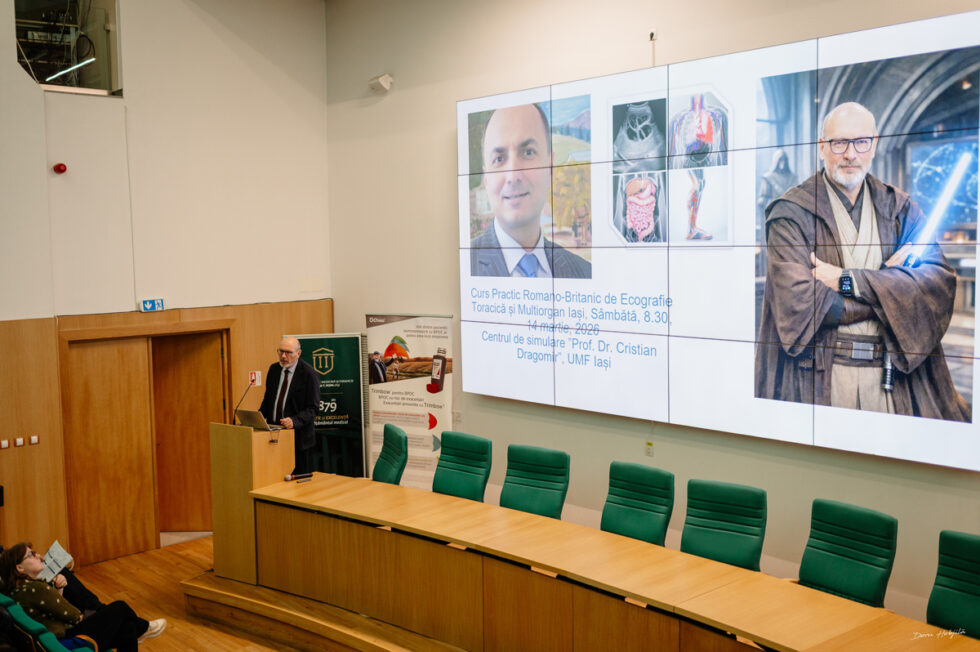 Cursul Româno-Britanic de Ecografie Toracică, cu componentă hands-on, a fost coordonat de o echipă de specialiști din România și din străinătate. Unul dintre coordonatorii cursului a fost Tudor Toma, consultant în pneumologie intervențională la Londra, absolvent al universității ieșene și ambasador Alumni al UMF Iași. Lectorii invitați au provenit din Iași, București, Regatul Unit și Italia.