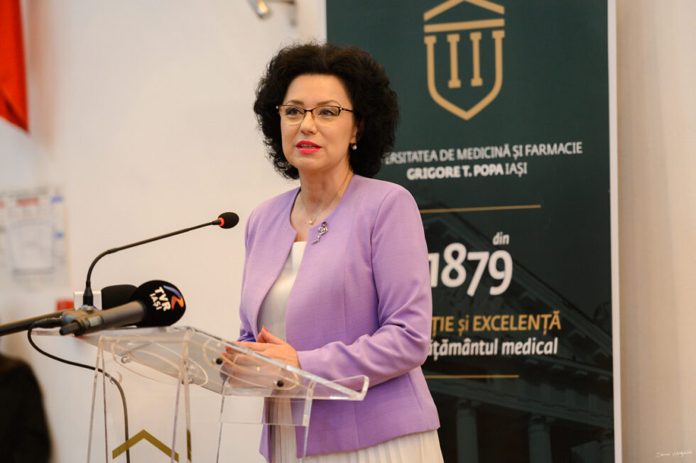 Prof. Luciana Antoci, Inspector Școlar General în cadrul Inspectoratului Școlar Județean Iași, a adus la festivitatea de deschidere a anului universitar la UMF Iași „gândul bun al mediului preuniversitar”.