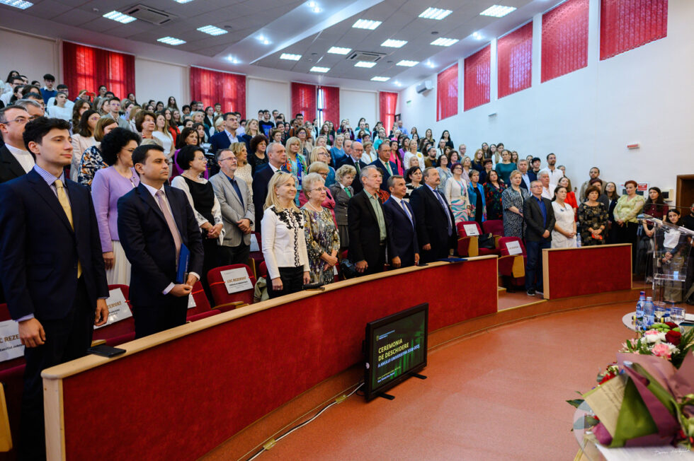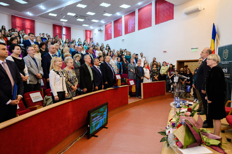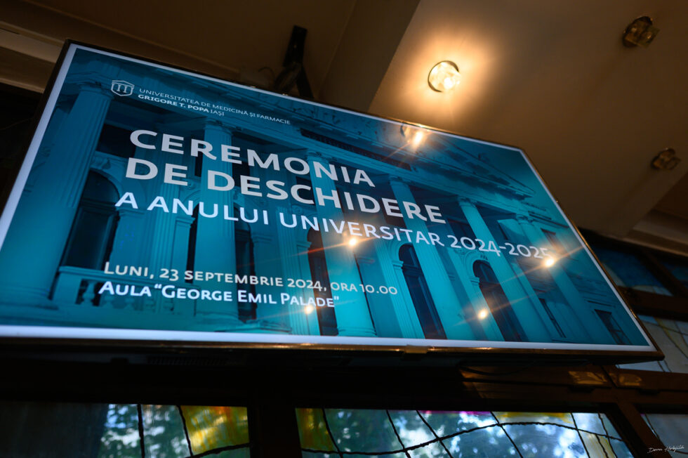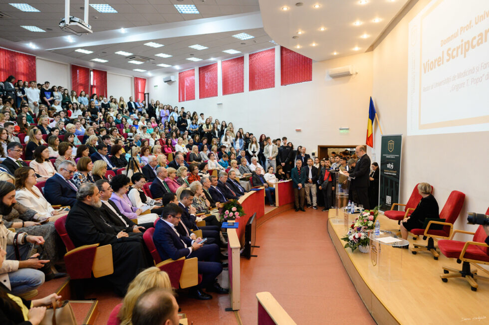 „Fiecare început de an universitar are propria energie, este un moment de reînnoire și entuziasm”, a subliniat prof. univ. dr. Viorel Scripcariu, rectorul Universității de Medicină și Farmacie „Grigore T. Popa” din Iași, la ceremonia de deschidere a anului universitar 2024-2025. Și, într-adevăr, festivitatea care a avut loc în dimineața zilei de luni, 23 septembrie, s-a desfășurat într-o atmosferă încărcată de energia vibrantă aparte a „bobocilor” din anul I, care au umplut cu tinerețe și candoare Aula „George Emil Palade” a Universității. Momentul solemn a fost marcat și de prezența celorlalți rectori ai universităților ieșene, a inspectorului școlar general al ISJ Iași, precum și a oficialităților din administrația locală și a reprezentanților cultelor ieșene.