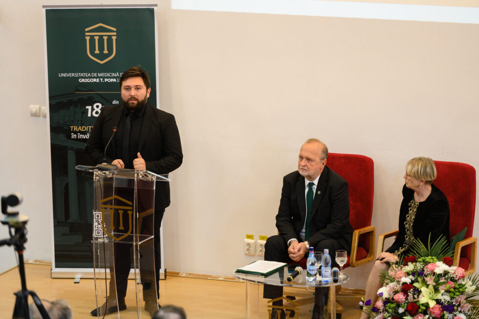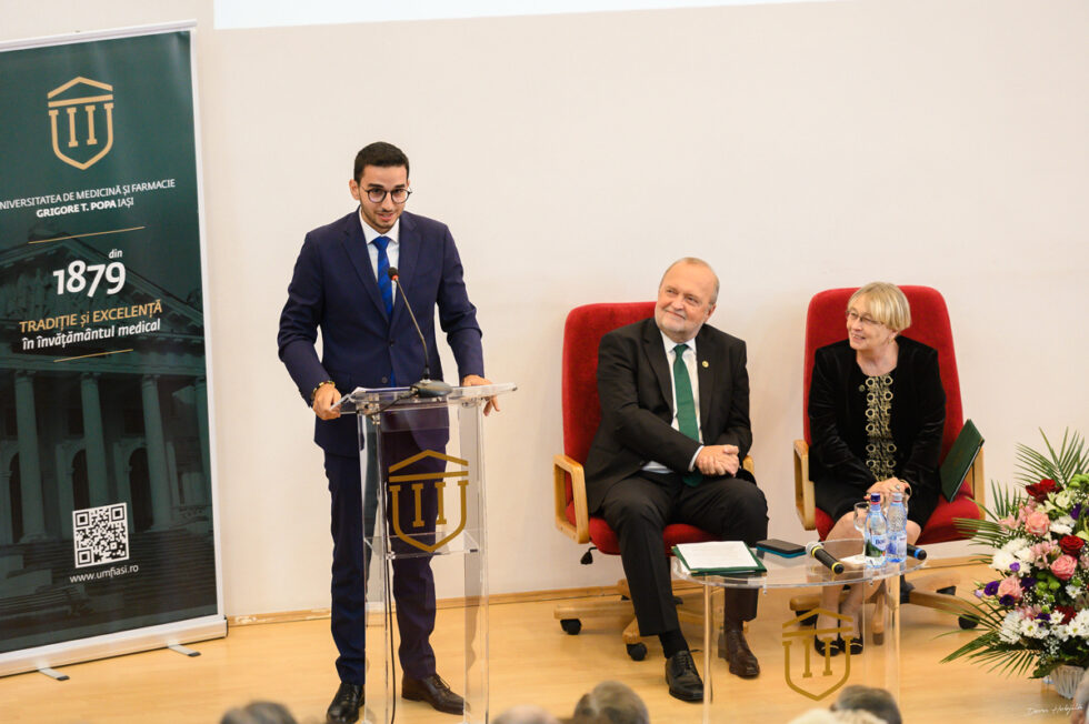 Manifestarea s-a încheiat cu saluturile emoționate ale reprezentanților studenților de la Universitatea de Medicină și Farmacie „Grigore T. Popa” din Iași, liniile de predare în română, engleză și franceză: Mihăiță Chistol – președintele Societății Studenților Mediciniști, Demetra Izabel Ursu – reprezentantul studenților de la liniile de predare în engleză în Senatul UMF Iași și Hamza El Khaier – reprezentantul studenților de la liniile de predare în franceză în Senatul UMF Iași și Președinte al Asociației Medicale a Studenților Francofoni din Iași (AMSFI).