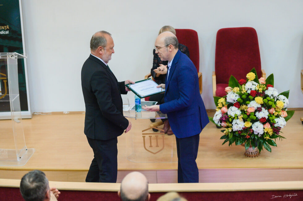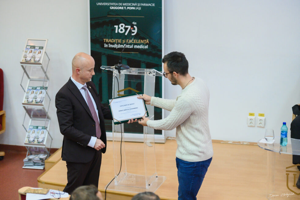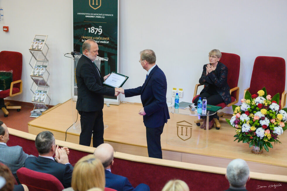 Tot miercuri, de la ora 14.00, în Aula „George Emil Palade”, reputatul chirurg pediatru Gabriel Ionescu, primul decan al Facultății de Medicină Iași după revoluția din 1989, a susținut conferința: Chirurgie pediatrică pe trei continente. O experiență unică de 50 de ani”.