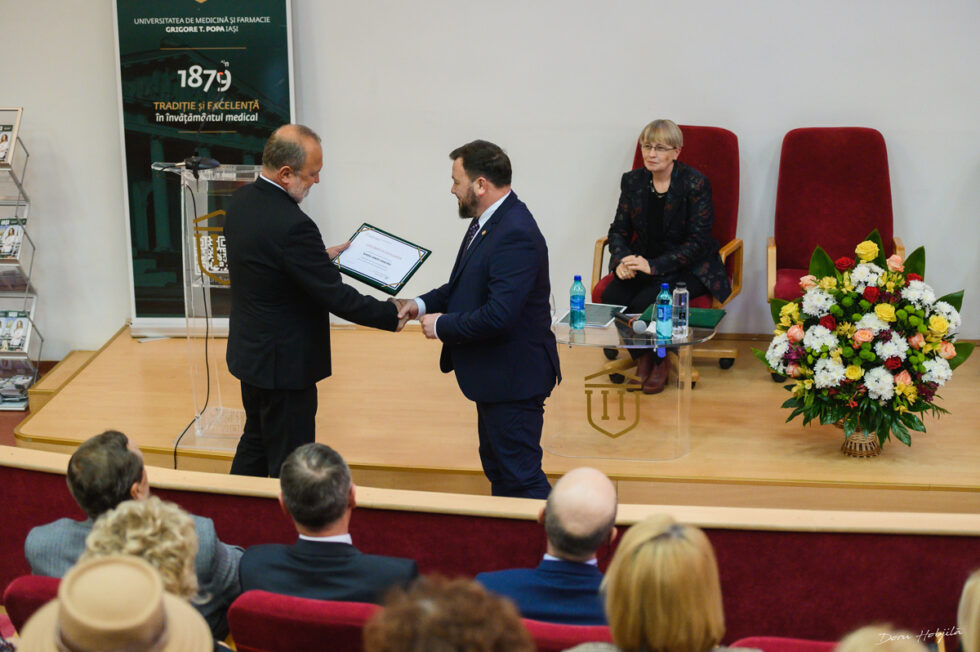 Primăria Iași a fost reprezentată de viceprimarul Daniel Juravle, care a apreciat, în discursul său, valoarea învățământului superior medical ieșean, recunoscută atât în țară cât și străinătate, valoare certificată de numărul mare de studenți străini care au ales să studieze la UMF Iași.
