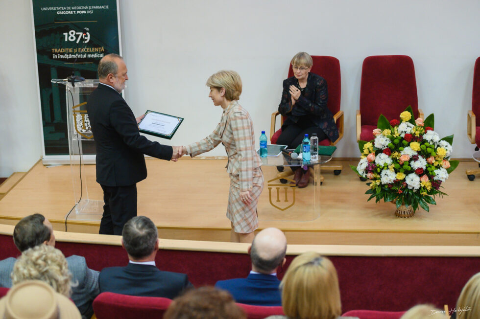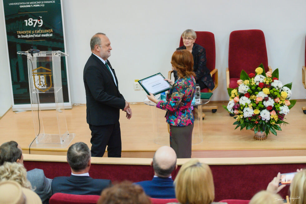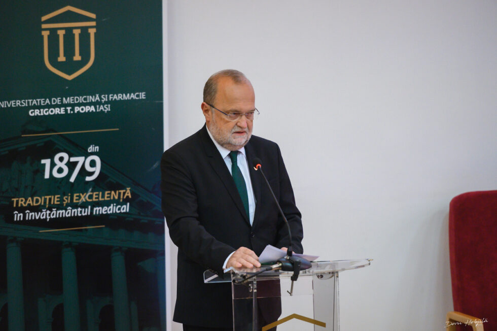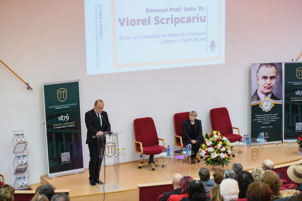 Festivitatea de deschidere a Zilelor UMF Iași, care a avut loc miercuri, 7 septembrie, de la ora 12.00, a adunat în eleganta Aulă „George Emil Palade” a Universității membri ai corpului academic și administrativ, studenți și reprezentanți ai administrației publice locale și ai cultelor religioase. O întâlnire luminoasă și caldă a Universității cu prietenii săi, cu ocazia sărbătoririi a 143 de ani de la înființarea învățământului medical superior la Iași – „un număr briliant, așa cum îl descrie știința matematicii”. Un număr briliant căruia i se suprapune și împlinirea a „30 de ani de când această instituție și-a fixat în eternitate numele unui ilustru savant și om al cetății, Grigore T. Popa”, după cum a punctat, în discursul său, amfitrionul manifestării, prof. univ.dr. Viorel Scripcariu, rectorul UMF Iași.