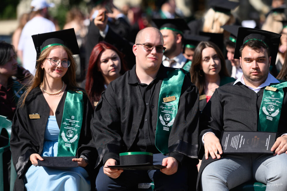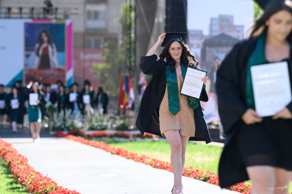 Poate să fi fost din cauza soarelui torid al lunii lui Cuptor, sau din pricina emoțiilor pe care le simțeai aproape fizic, așa cum îndrăgostiții simt fluturi în stomac, dar atmosfera pe Esplanada Universității, în ziua Ceremoniei de absolvire a Promoției 2025, a fost, cu adevărat, incendiară.