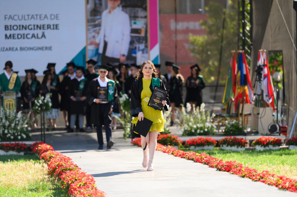 Programul cursurilor festive s-a încheiat cu ceremonia Facultății de Bioinginerie Medicală, care a reunit 187 de absolvenți din specializările Bioinginerie (63), Balneofiziokinetoterapie și recuperare (100), precum și Balneofiziokinetoterapie și recuperare în limba engleză (24).