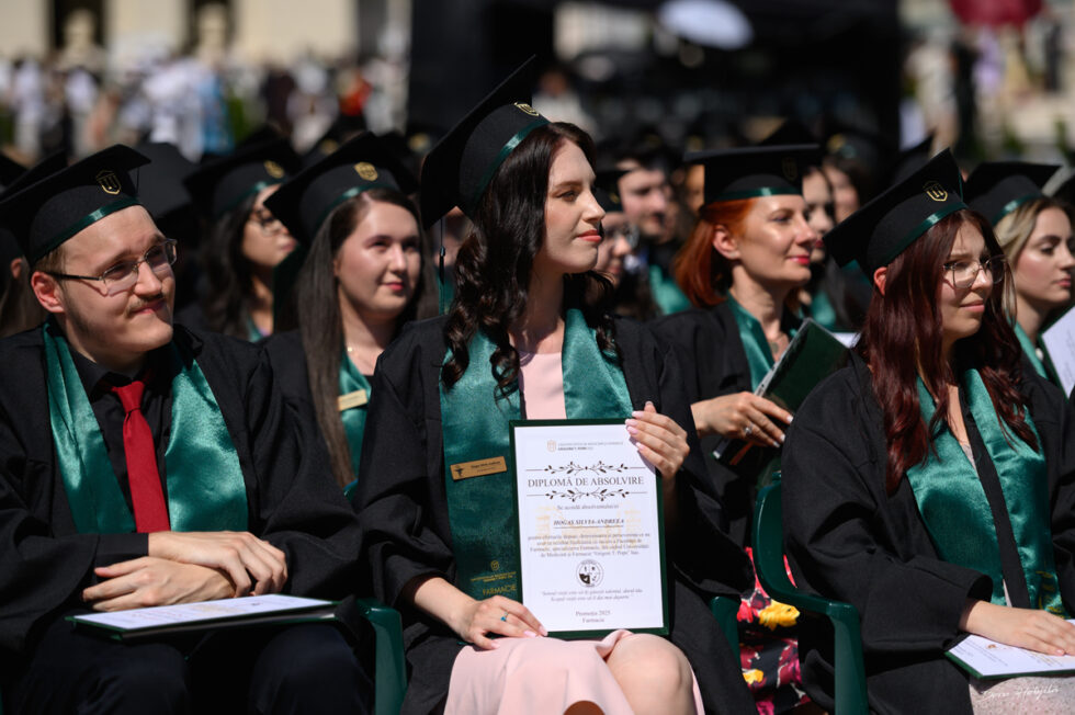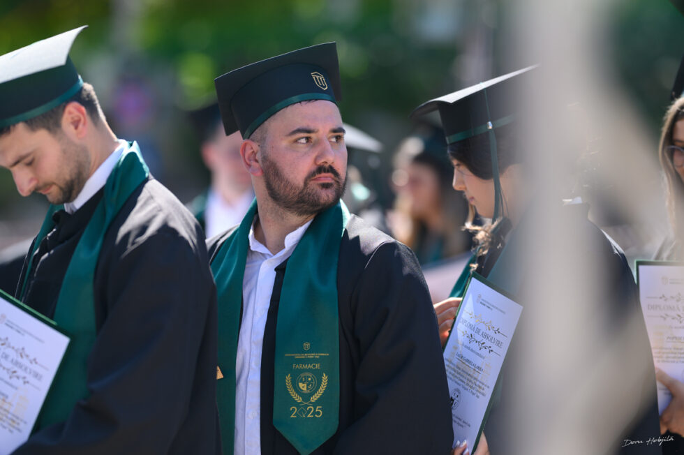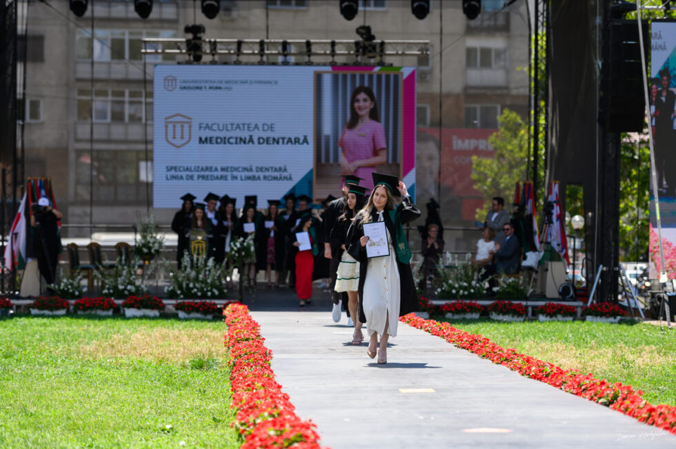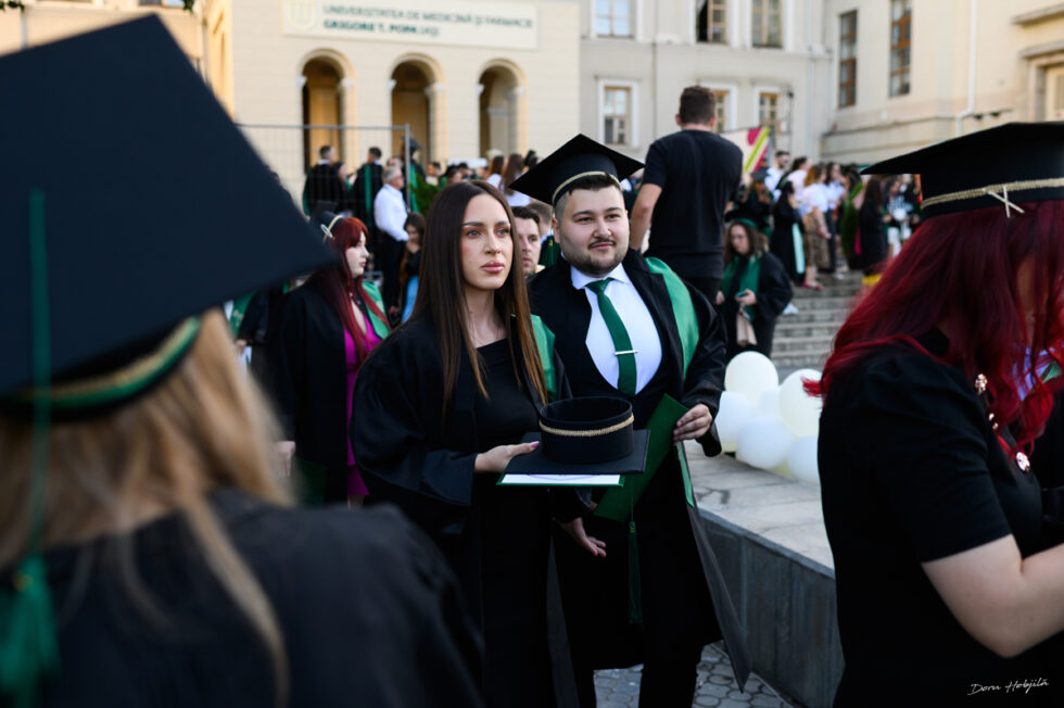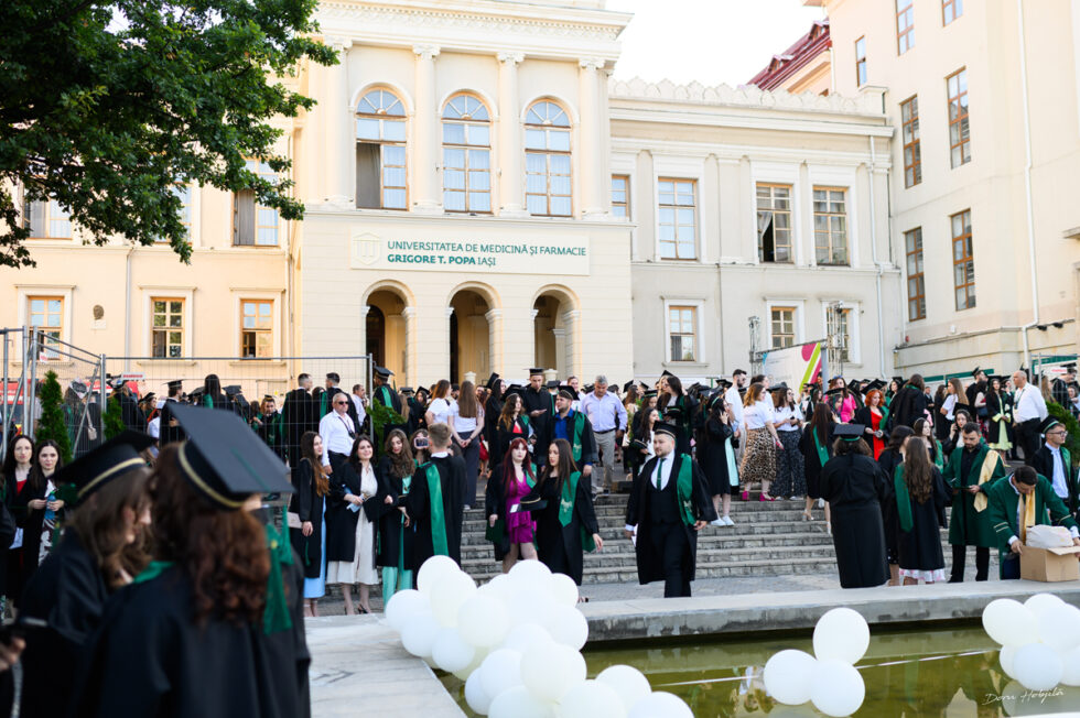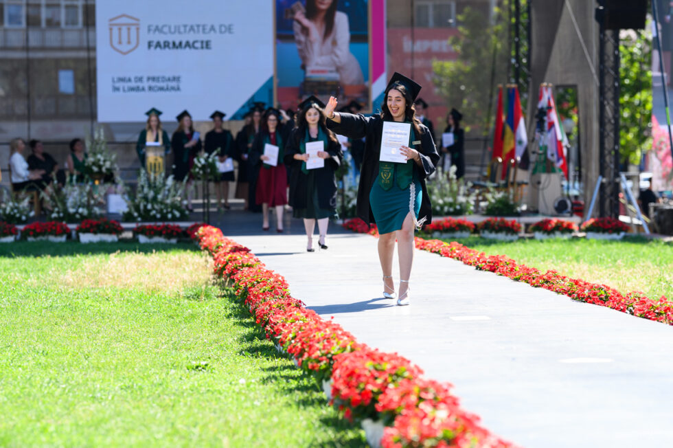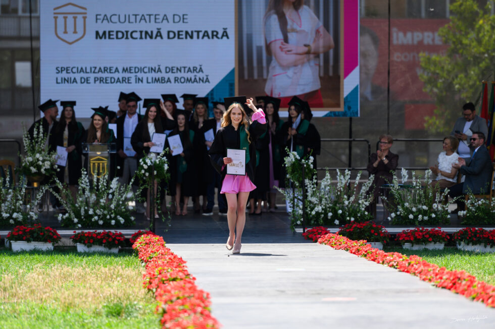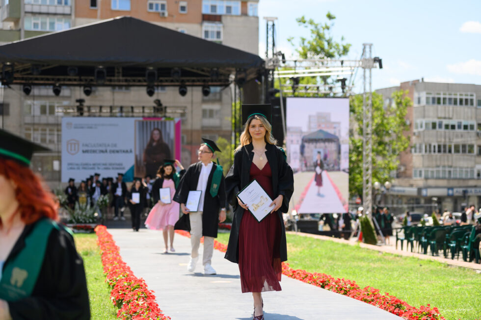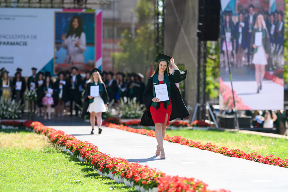 Ziua de sărbătoare a început devreme, la ora 8:30, când esplanada Universității a devenit, pe rând, scena cursurilor festive ale celor patru facultăți: Medicină, Medicină Dentară, Farmacie și Bioinginerie Medicală. Cu emoție sinceră, cu bucurie amestecată cu melancolie, absolvenții și-au ocupat locurile pentru ceea ce avea să fie o zi pe care n-o vor uita niciodată.