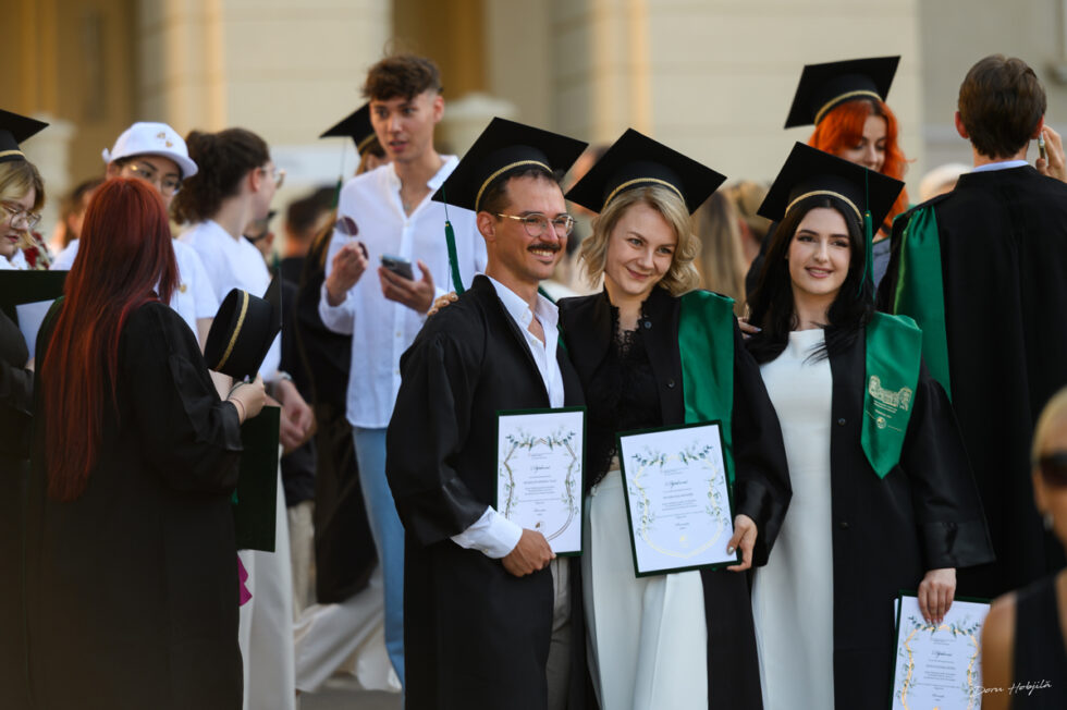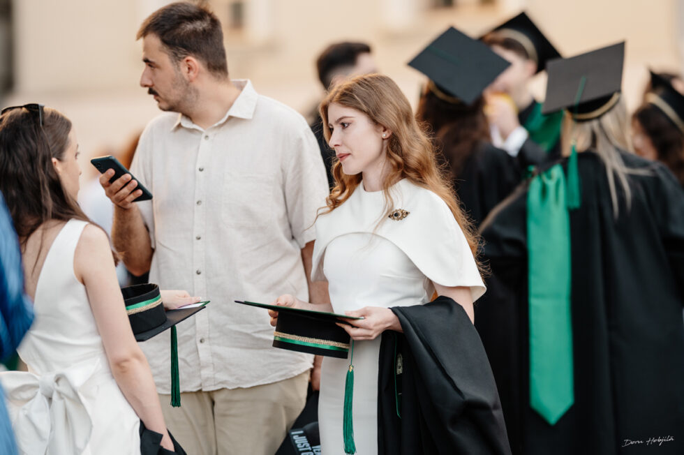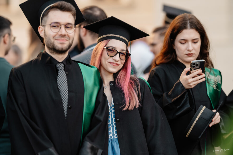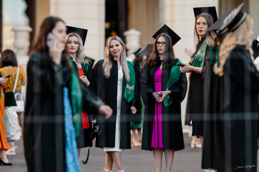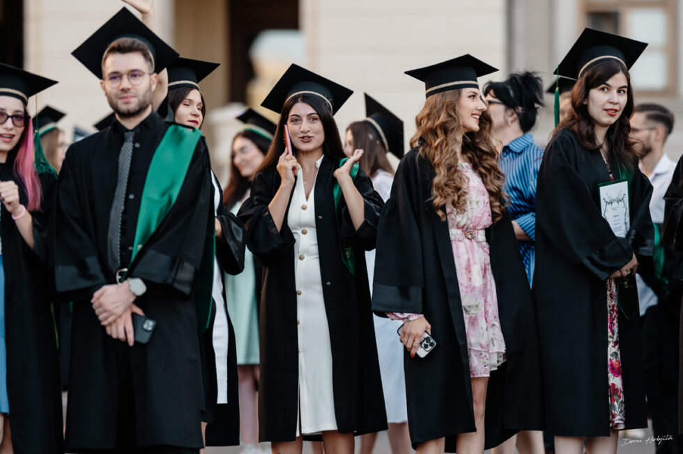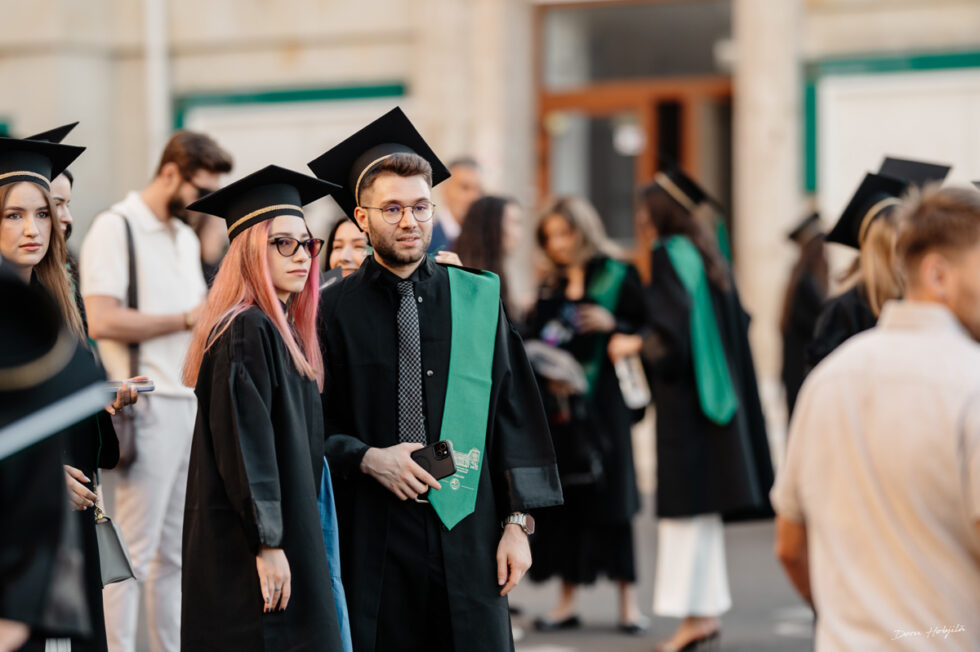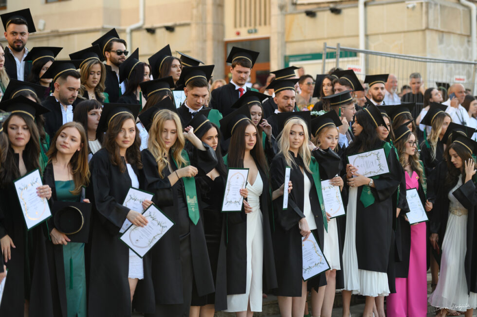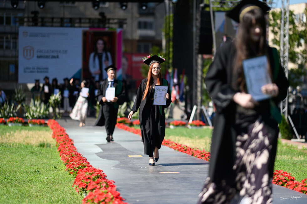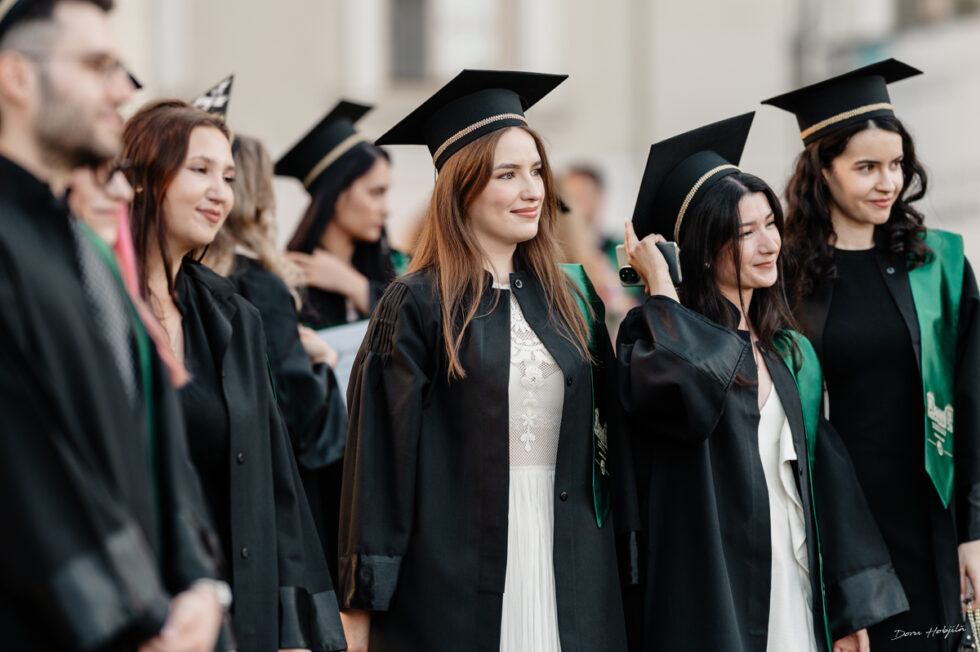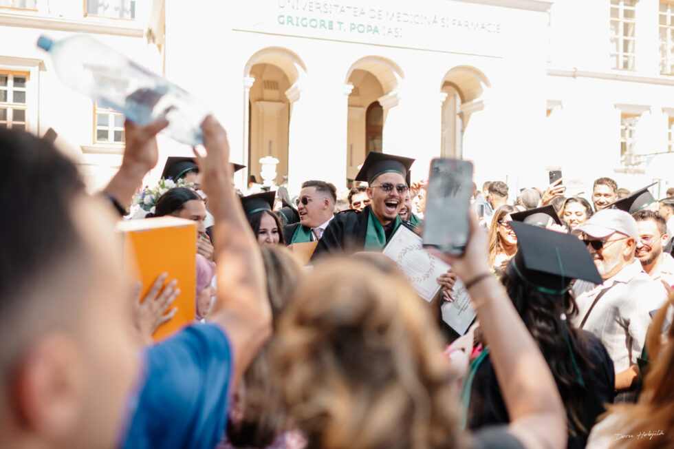 Ziua de sărbătoare a început devreme, la ora 8:30, când esplanada Universității a devenit, pe rând, scena cursurilor festive ale celor patru facultăți: Medicină, Medicină Dentară, Farmacie și Bioinginerie Medicală. Cu emoție sinceră, cu bucurie amestecată cu melancolie, absolvenții și-au ocupat locurile pentru ceea ce avea să fie o zi pe care n-o vor uita niciodată.