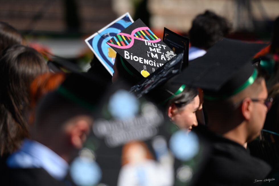 Conf. univ. dr. Călin-Petru Corciovă, decan de promoție pentru specializarea Bioinginerie, a evidențiat contextul complex în care s-au format tinerii: „Ați studiat într-o lume aflată în continuă schimbare, o lume în care tehnologia, știința și medicina se împletesc mai profund ca oricând. Ați învățat să legați punți între inginerie și biologie, între inovație și compasiune și între știință și umanitate.” El le-a amintit de rigorile parcursului universitar: „Ați trecut prin examene grele: laboratoare, proiecte interminabile, stagii clinice, cercetări. Dar iată-vă astăzi aici, cu fruntea sus, având diploma în mână, și pășiți într-o lume în care sunteți bioingineri, profesioniști ai viitorului.”