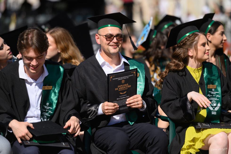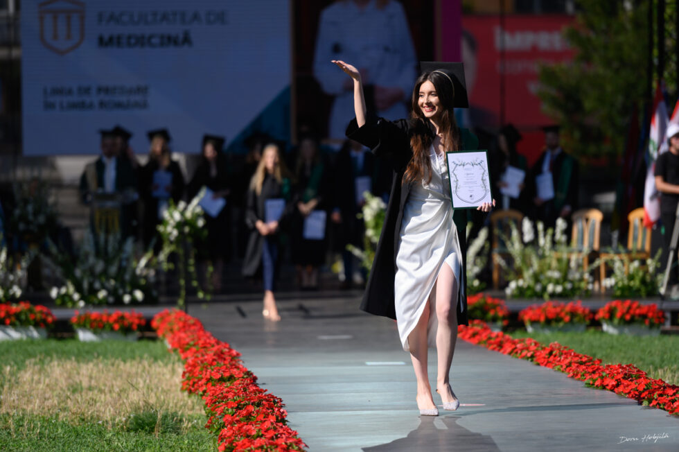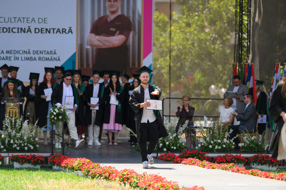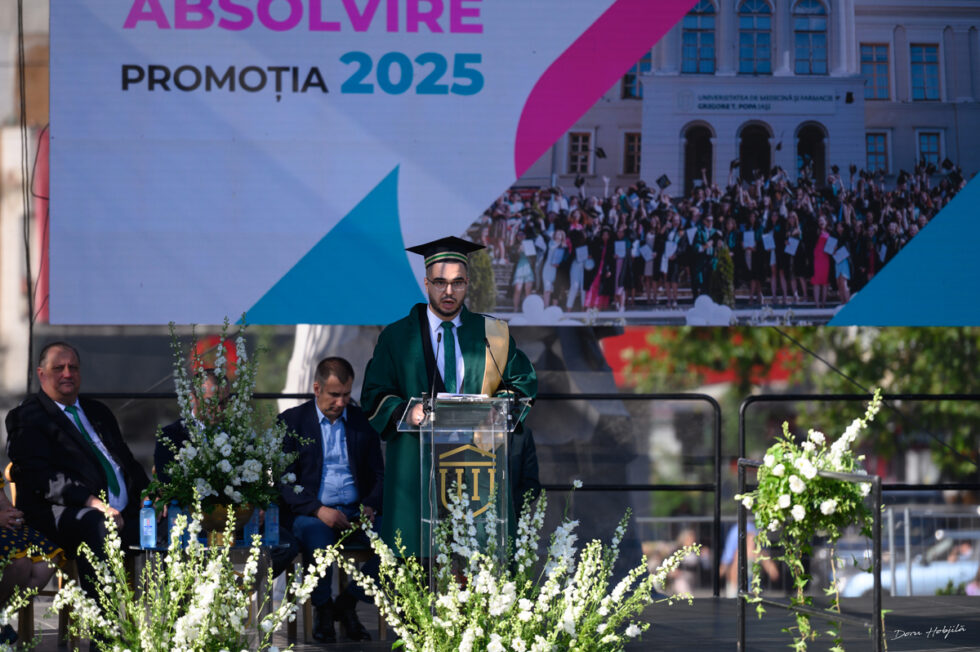 În final, rectorul le-a transmis un mesaj personal: „Sunteți o generație care a reușit să se ridice în fața unor condiții extraordinare, care a demonstrat curaj și dăruire. Acum, lumea vă așteaptă cu brațele deschise. Aveți șansa de a vă implica activ în societate, de a schimba în bine lucrurile și de a contribui la sănătatea și bunăstarea comunității noastre. (…) Vă așteptăm să reveniți și să ne împărtășiți experiențele și succesele voastre!”