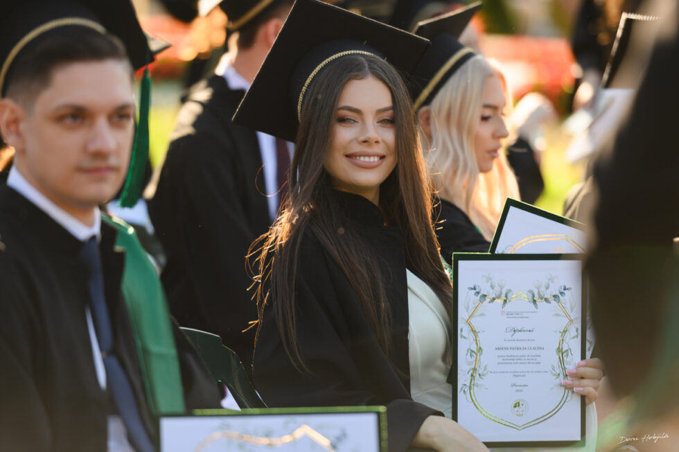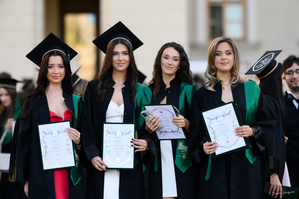 Pentru cei 42 de absolvenți ai specializării Cosmetică medicală și tehnologia produsului cosmetic, discursul șef lucrări dr. Maria Drăgan – decan de promoție – a subliniat misiunea profund umană care îi așteaptă: „Domeniul pentru care v-ați pregătit este unul inovator, complex și profund uman. Este locul în care știința întâlnește arta, iar cunoașterea se transformă în grijă, în frumusețe, în încredere. Voi sunteți cei care veți avea grijă nu doar de pielea oamenilor, ci și de stima lor de sine, veți crea produse și soluții care aduc confort, siguranță, dar și bucurie.”