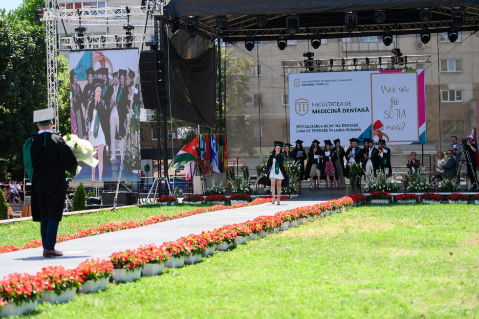După ceremonia dedicată Facultății de Medicină, a urmat cursul festiv al Facultății de Medicină Dentară, care a reunit pe rând cele trei specializări: Medicină dentară, Tehnică dentară și Asistență de profilaxie stomatologică. Maratonul emoțiilor a continuat pe scena montată pe Esplanada Universității, unde rând pe rând s-au citit cataloagele.