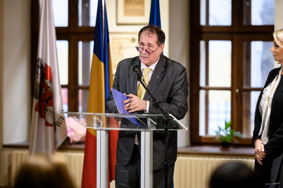Partea a doua a avut loc în sala de festivități a Societății de Medici și Naturaliști, unde amfitrion a fost președintele SMN, prof. univ. dr. Viorel Scripcariu. „Acest edificiu, încărcat de istorie, este locul unde s-a decis candidatura lui Alexandru Ioan Cuza la domnia Moldovei, un moment pivot în conturarea destinului național. De asemenea, aici își are sediul Societatea de Medici și Naturaliști Iași, prima societate științifică modernă de tip european din Țările Române și cea mai veche societate din Europa Orientală”, a subliniat prof. univ. dr. Viorel Scripcariu, rectorul Universității de Medicină și Farmacie „Grigore T. Popa” din Iași și președinte al SMN. Rectorul Universității a vorbit despre „triunghiul sacru”: Spitalul Sf. Spiridon, Facultatea de Medicină și Societatea de Medici și Naturaliști, constituită în Iași în anul 1830, și care s-a manifestat complex și pe multiple planuri în viața spirituală a epocii. „Activitatea societății a fost uneori sinusoidală, dar în succesiunea de evenimente și acțiuni de-a lungul vremii, ideea de continuitate a mesajului de dezvoltatea socială este pregnantă, ea fiind legată de numele ctitorilor și al unei serii de intelectuali de marcă, din care îi amintesc pe Iacob Czihak, Gheorghe Asachi (trebuie amintit că în casele acestuia s-au ținut cele dintâi ședințe ale societății), Gheorghe Cuciureanu, Mihail Zotta, Grigore Cobâlcescu, Anastasie Fătu, Emanoil Riegler, Grigore T. Popa sau Ioan Enescu. De numele acestora este legată ideea amintitului mesaj, nu doar științific, nu doar medical, ci și al celui socio-cultural.”, a mai explicat prof. univ. dr. Viorel Scripcariu.