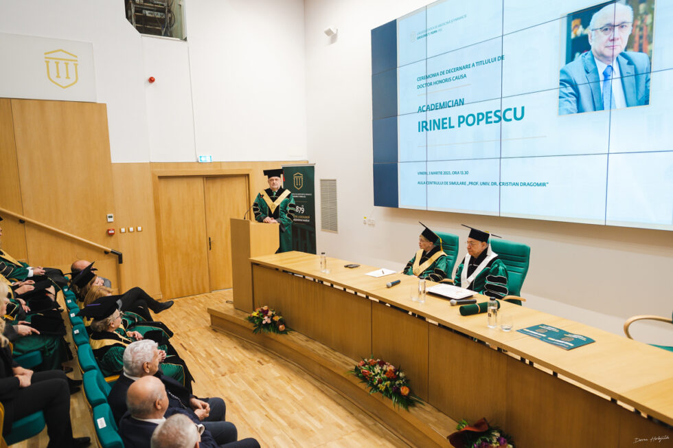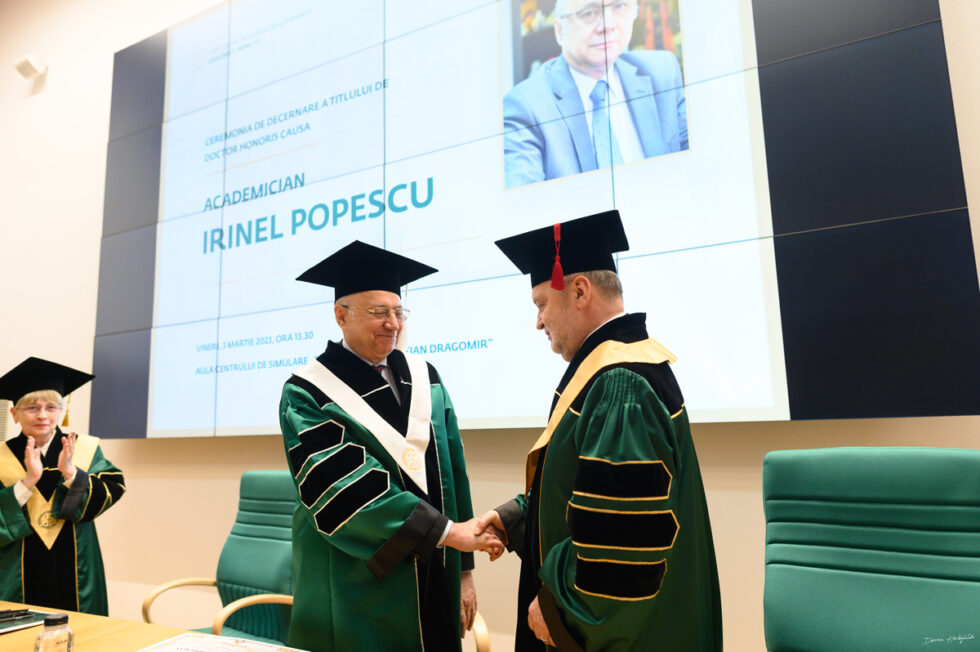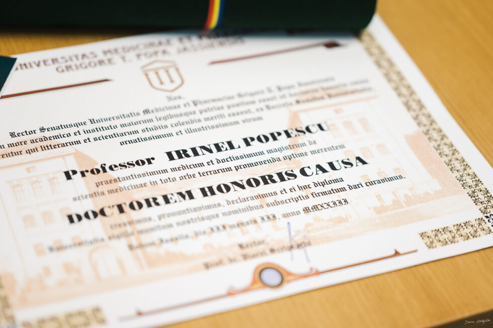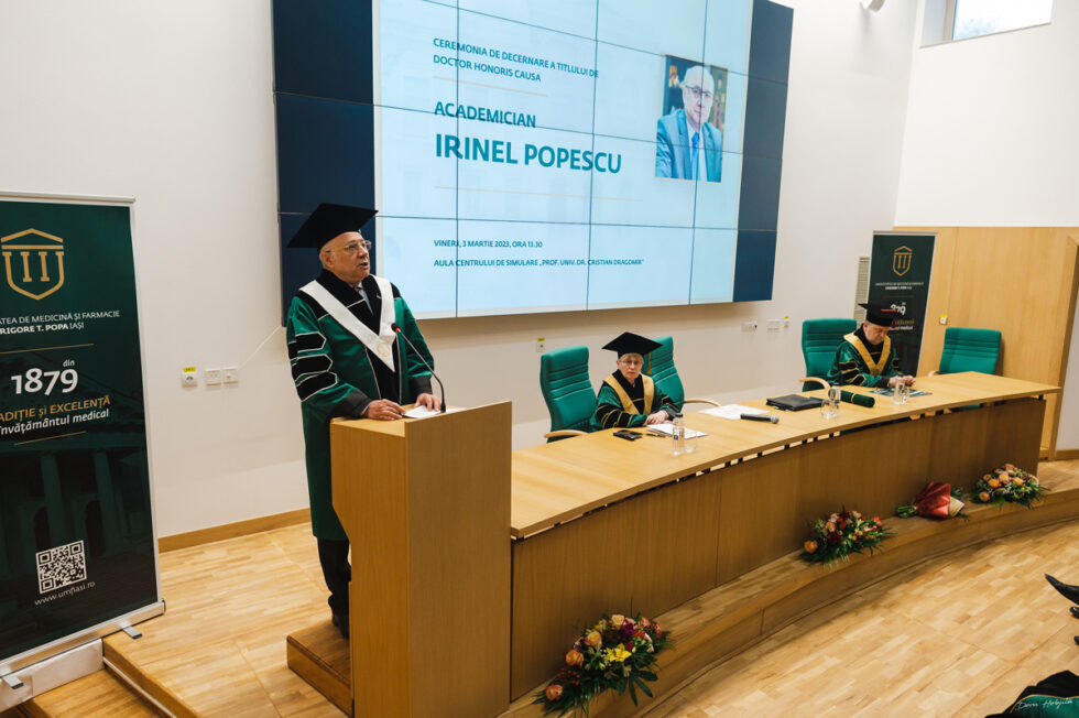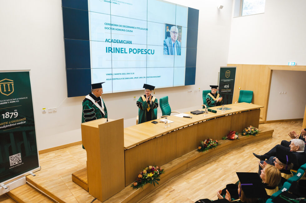 Universitatea de Medicină și Farmacie Grigore T. Popa din Iași a acordat titlul onorific de Doctor Honoris Causa domnului academician Irinel Popescu, personalitate marcantă în domeniul științelor medicale. Academician Irinel Popescu este profesor de chirurgie în cadrul Universității Medicină și Farmacie „Carol Davila” din București și director al Centrului pentru Boli Digestive si Transplant Hepatic din cadrul Institutului Clinic Fundeni, București. Ceremonia de decernare a avut loc vineri, 3 martie 2023, în Aula Centrului de Simulare „Prof. Univ. Dr. Cristian Dragomir”.