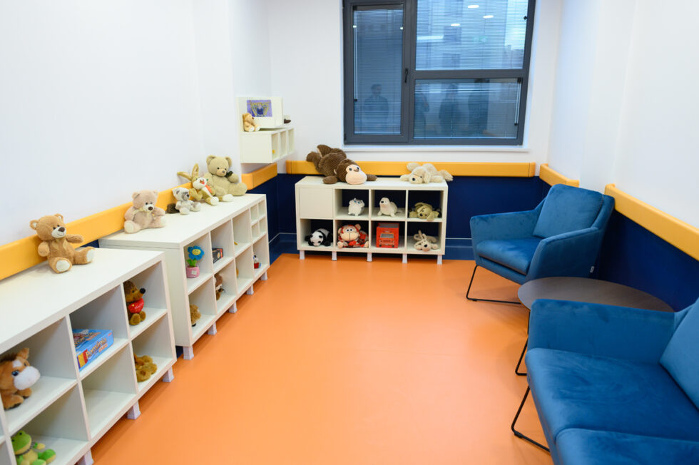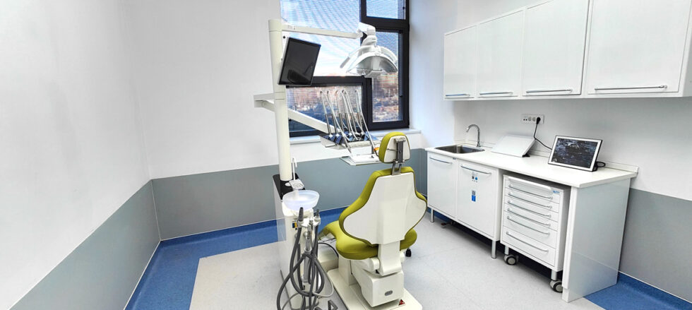 • Etajul 1 găzduieşte secţia de pedodonţie cu 15 scaune stomatologice organizate în diferite cabinete: cabinet profesor, rezidenţi, 16 scaune dentare în cabinete de consultație.