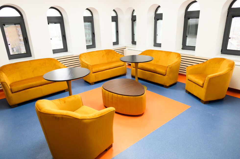 • La etajul 2 sunt amplasate o sală de curs, o sală tratamente, sală ortodonţie – tratamente speciale, cabinete profesori şi rezidenţi, respectiv 15 scaune dentare în cabinete de consultație.