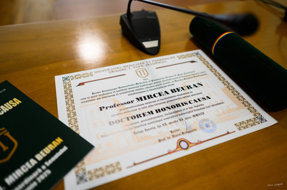 Vineri, 20 iunie 2025, Universitatea de Medicină și Farmacie „Grigore T. Popa” din Iași i-a conferit profesorului universitar doctor Mircea Beuran titlul de Doctor Honoris Causa, în cadrul unei ședințe solemne a Senatului universitar, desfășurate în Sala Senat a instituției.