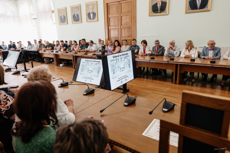 În cadrul ceremoniei, prof. univ. dr. Mircea Beuran a susținut prelegerea „Viitorul chirurgiei”, în care a abordat direcțiile moderne de evoluție ale specialității, cu accent pe dezvoltarea chirurgiei robotice, aplicarea inteligenței artificiale și provocările etice și profesionale generate de noile tehnologii.