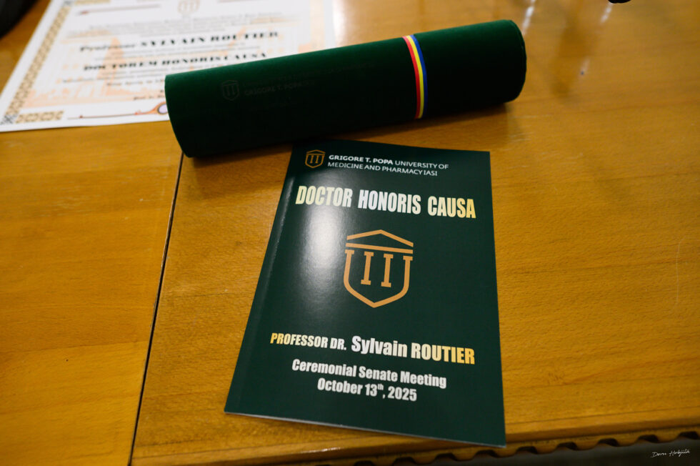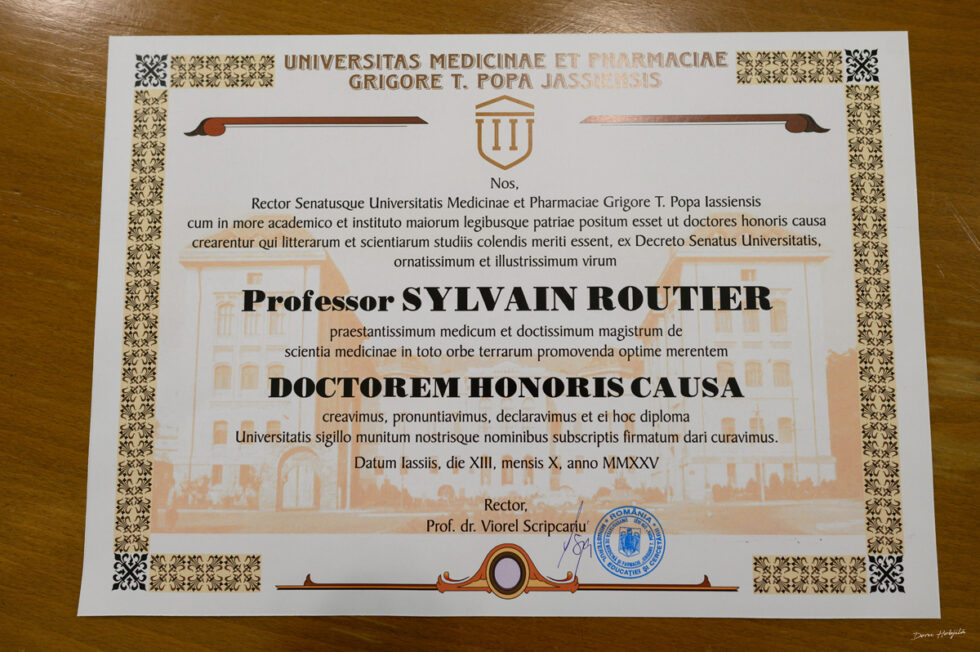 Prin acordarea titlului de Doctor Honoris Causa, UMF Iași recunoaște contribuția profesorului Sylvain Routier la progresul științei și la consolidarea colaborării academice dintre Franța și România.