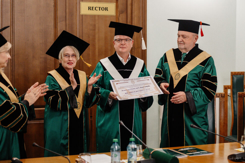 „Este o onoare deosebită să îl prezentăm pe profesorul Sylvain Routier, un savant remarcabil a cărui carieră reflectă excelența științifică, inovația și spiritul umanist”, a afirmat prof. univ. dr. Viorel Scripcariu în Laudatio.
