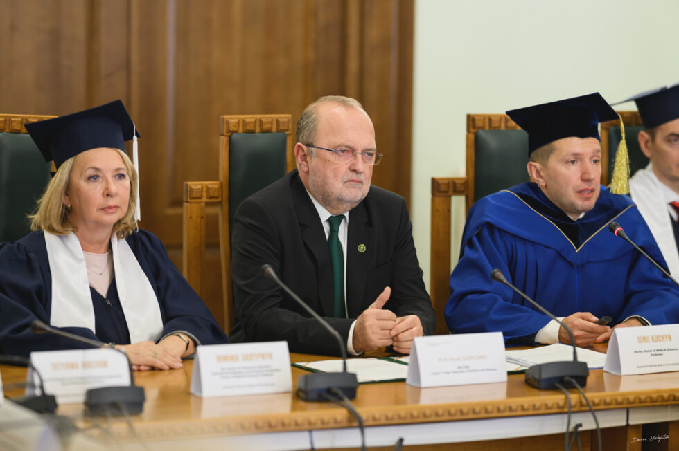„În aceste vremuri dificile, nu putem cuprinde pe deplin adâncimea greutăților cu care se confruntă poporul ucrainean, nici condițiile extraordinare în care cadrele didactice continuă să pregătească viitorii profesioniști medicali. Totuși, suntem alături de voi. Suntem alături de voi în călătoria voastră către un viitor mai luminos și în aspirația voastră de a vă deschide și mai mult către Europa. Reziliența voastră ne inspiră, iar împreună vom continua să construim o punte de cunoaștere, înțelegere și sprijin reciproc peste granițele noastre. Fie ca instituțiile noastre să continue să fie centre de cunoaștere, compasiune și forță. Împreună, să ducem mai departe misiunea nobilă de vindecare și de avansare a frontierelor medicinei.”, a subliniat prof. univ. dr. Viorel Scripcariu, rectorul UMF Iași, în discursul său de mulțumire.