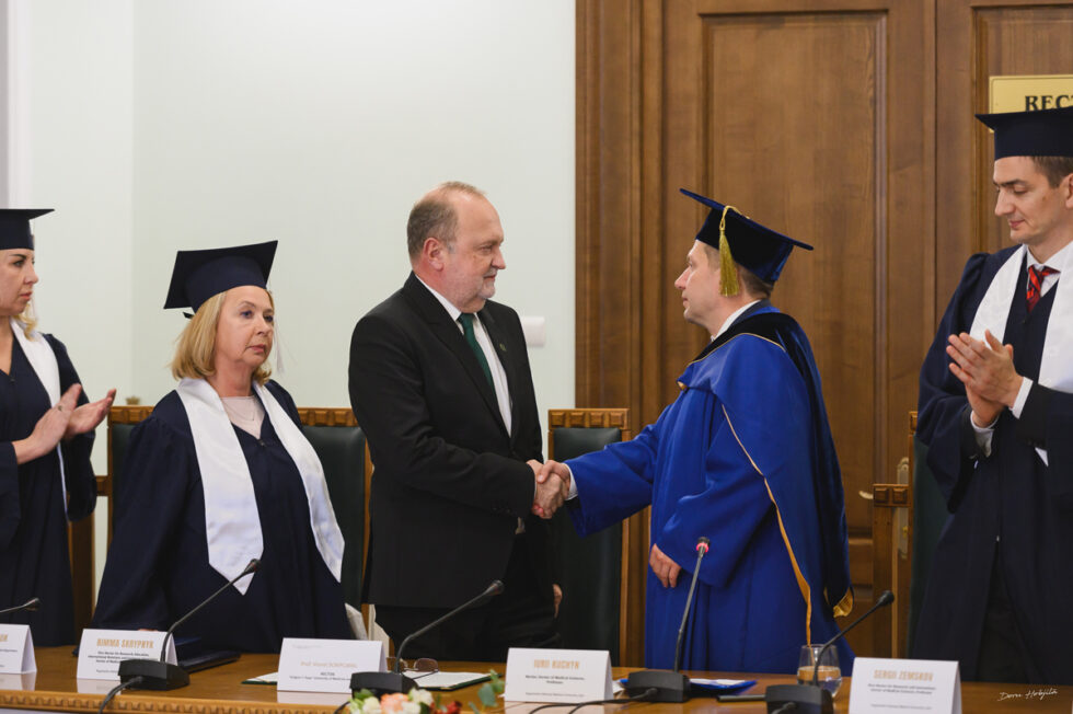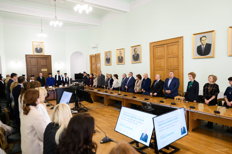 Profesorul Viorel Scripcariu, rectorul Universității de Medicină și Farmacie „Grigore T. Popa” din Iași, a devenit, astăzi, 4 noiembrie 2024, Doctor Honoris Causa al Universității Naționale de Medicină Bogomolets din Ucraina. Titlul onorific i-a fost conferit de prof. univ. dr. Iurii Kuchyn, rectorul prestigioasei universități kievene. Delegația ucraineană a fost alcătuită, în afara rectorului Universității, de trei prorectori – conf. univ. dr. Volodymyr Tytykalo, prof. univ. dr. Sergii Zemskov, prof. univ. dr Rimma Skrypnyk, de șeful Departamentului de Propedeutică în Ortodonție și Protetică – prof. univ. dr. Tetyana Kostiuk, de secretarul academic al Universității – conf univ. dr. Roman Palyvoda, de conf. univ. dr. Natalia Greben, de la Departamentul Academic și Metodologic și de conf. univ. dr. Ivanna Sakhanda, șef al Departamentului de Relații Internaționale.