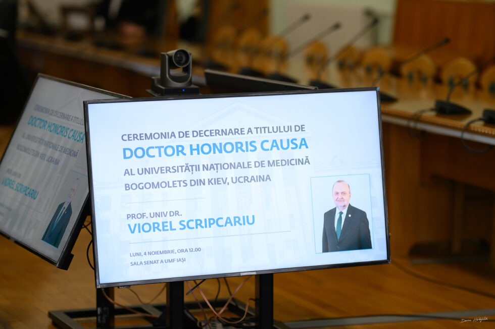 Doctor Honoris Causa al Universității Naționale de Medicină Bogomolets este al treilea titlu acordat rectorului UMF Iași, prof. univ. dr. Viorel Scripcariu, după cel primit în 2019 de la Universitatea de Stat de Medicină și Farmacie „Nicolae Testemițanu” și cel primit anul trecut de la Universitatea Națională de Medicină din Odesa.
