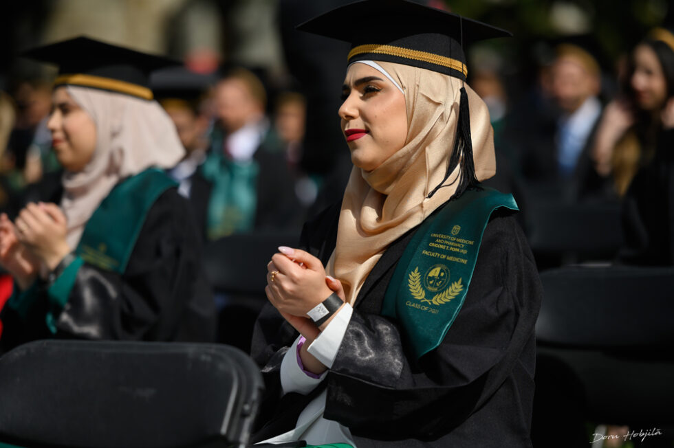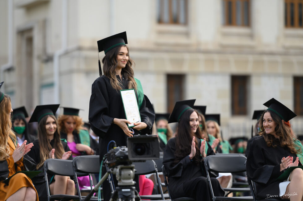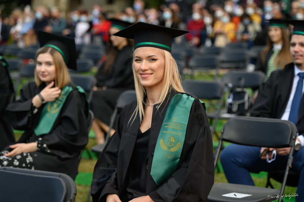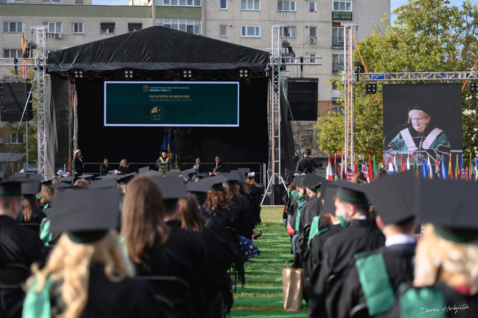 737 de tineri absolvenți mediciniști au fost prezenți „la ultimul raport de gardă din viața de student”, iar decanul Facultății de Medicină, dar și de promoție, prof. univ. dr. Ionela Lăcrămioara Șerban, i-a diagnosticat corect, ca având „simptomele unei patologii rare, o febră interioară mare, cauzată de emoții puternice și entuziasm”. Și cei 177 de absolvenți ai specializării Asistență Generală Medicală au ajuns la „sfârșitul studenției, dar la începutul unei noi etape, în care cuvintele cheie sunt responsabilitate și empatie”. După trei ani de facultate, 43 de absolvenți ai specializării Nutriție și Dietetică își iau la revedere de la Universitate, uitându-se cu „speranță în viitor”. Tuturor, un mesaj încurajator din partea decanului de suflet: „Să aveți încredere în voi înșivă. Să aveți vise mărețe, să vă urmați inima și intuiția”.