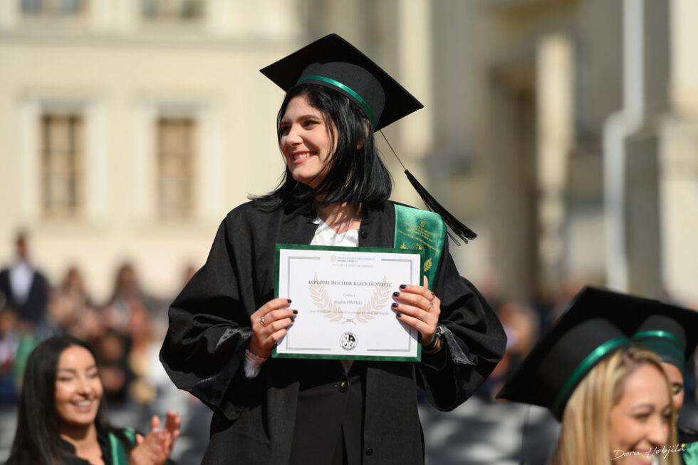 Tot astăzi, 262 de absolvenți ai Facultății de Medicină Dentară de la liniile de predare în română, engleză și franceză au sărbătorit, alături de cei dragi, absolvirea celor șase ani de facultate. „Festivitatea de absolvire este în egală măsură sfârșit și început, prilej de bucurie și prilej de proiecție pentru ceea ce urmează, pentru că de fapt marile provocări încep cu această zi a bucuriei”, le-a transmis prof. univ. dr. Monica-Silvia Tatarciuc, decanul Facultății de Farmacie. „Emoții pe care le vor purta în suflet toată viața” le-au simțit și cei 74 de absolvenți ai specializării Tehnică Dentară din cadrul Facultății de Medicină Dentară. Facultate care, după cum a subliniat decanul de promoție, prof.univ. dr. Norina Consuela Forna, a ajuns la cel de-al 73-lea an de existență.