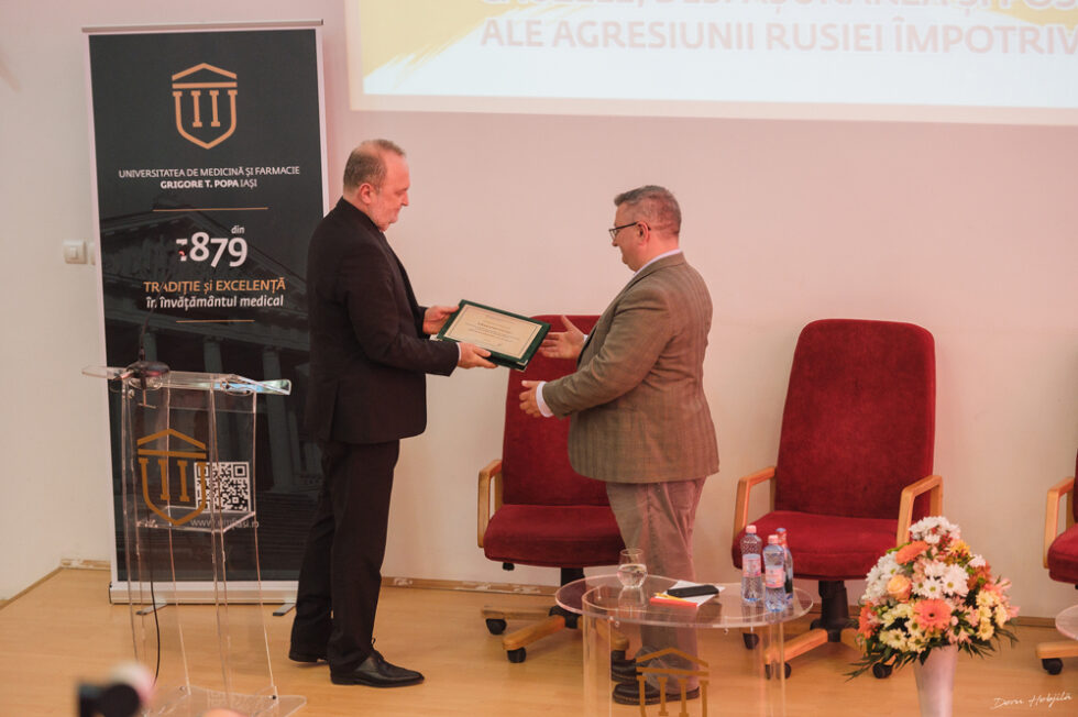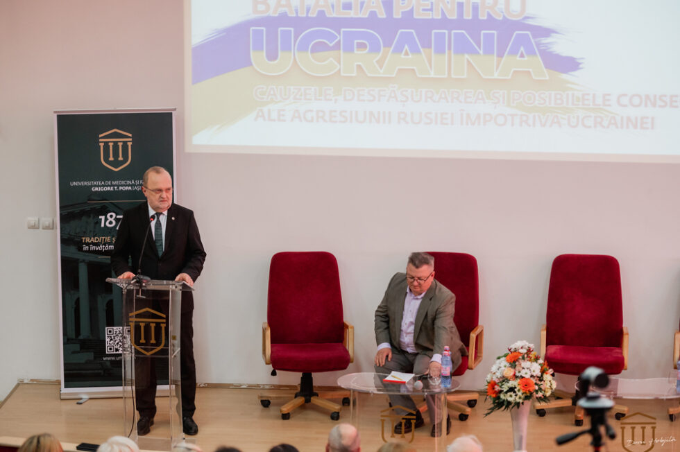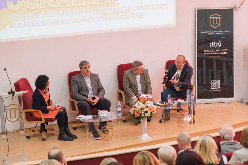 Invitat la Conferințele „Grigore T. Popa”, istoricul Armand Goșu a oferit o analiză complexă a războiului din Ucraina, pornind de la cauze – interne și externe, până la posibilele consecințe. O analiză realizată de un specialist al spațiului ex-sovietic, care cunoaște Rusia lui Putin din interior. Conferința a avut loc joi, 5 mai, în Aula „George Emil Palade” a Universității de Medicină și Farmacie „Grigore T. Popa” din Iași.
