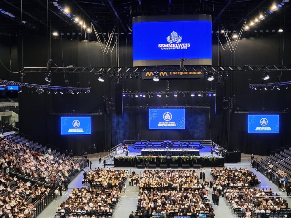 La impresionanta ceremonie de deschidere a anului academic al Universității Semmelweis, prof. univ. dr. Béla Merkely, rectorul Universității, le-a urat „Bun venit în marea familie Semmelweiss” celor aproape 4000 de boboci din anul I, dintre care 1.100 studenți internaționali din 75 de țări.