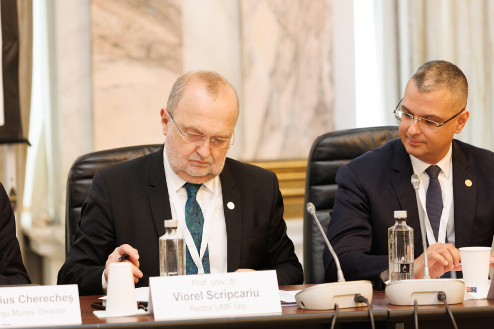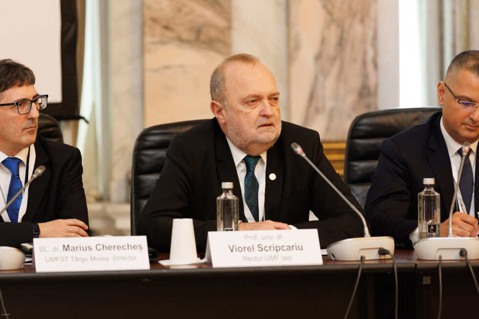 „Universitățile de Medicină și Farmacie sunt un pilon esențial al inovației în domeniul sănătății, atât la nivel național, cât și la nivelul regiunii din care fiecare dintre noi face parte. Prin Hubul de Inovație, care ia ființă azi, și prin proiectele dedicate din sfera studiilor clinice, a prevenției și promovării sănătății, precum și a digitalizării, suntem cu un pas mai aproape de modernizarea sistemului de sănătate prin transformarea practicii medicale în beneficiul pacienților români. Împreună cu partenerii instituționali și din mediul privat ne propunem să venim cu acțiuni concrete care să transforme cercetarea științifică și practica clinică din România”, a explicat prof. univ. dr. Viorel Scripcariu, Rectorul Universității de Medicină și Farmacie „Grigore T. Popa” Iași.