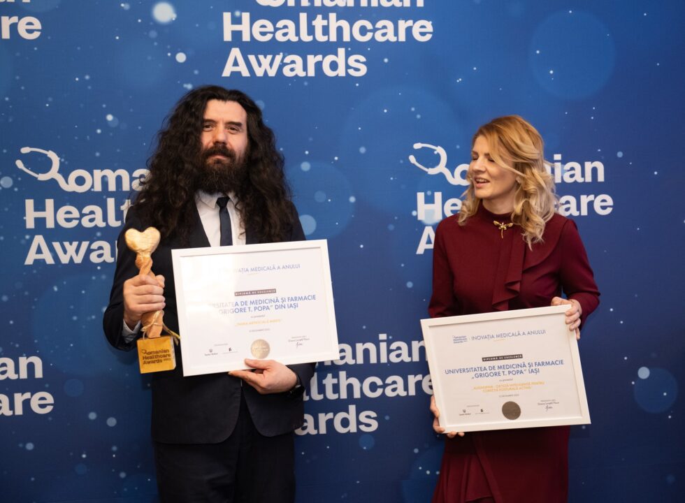 La ediția din acest an a Romanian Healthcare Awards – cea mai importantă competiție în domeniul medical din România, UMF Iași a fost nominalizată la categoria „Inovația Medicală a Anului” cu două proiecte: „Inima Artificială MAVIS” – care a și câștigat marele premiu și „AlignSpine – orteză inteligentă pentru corecție posturală activă”.
