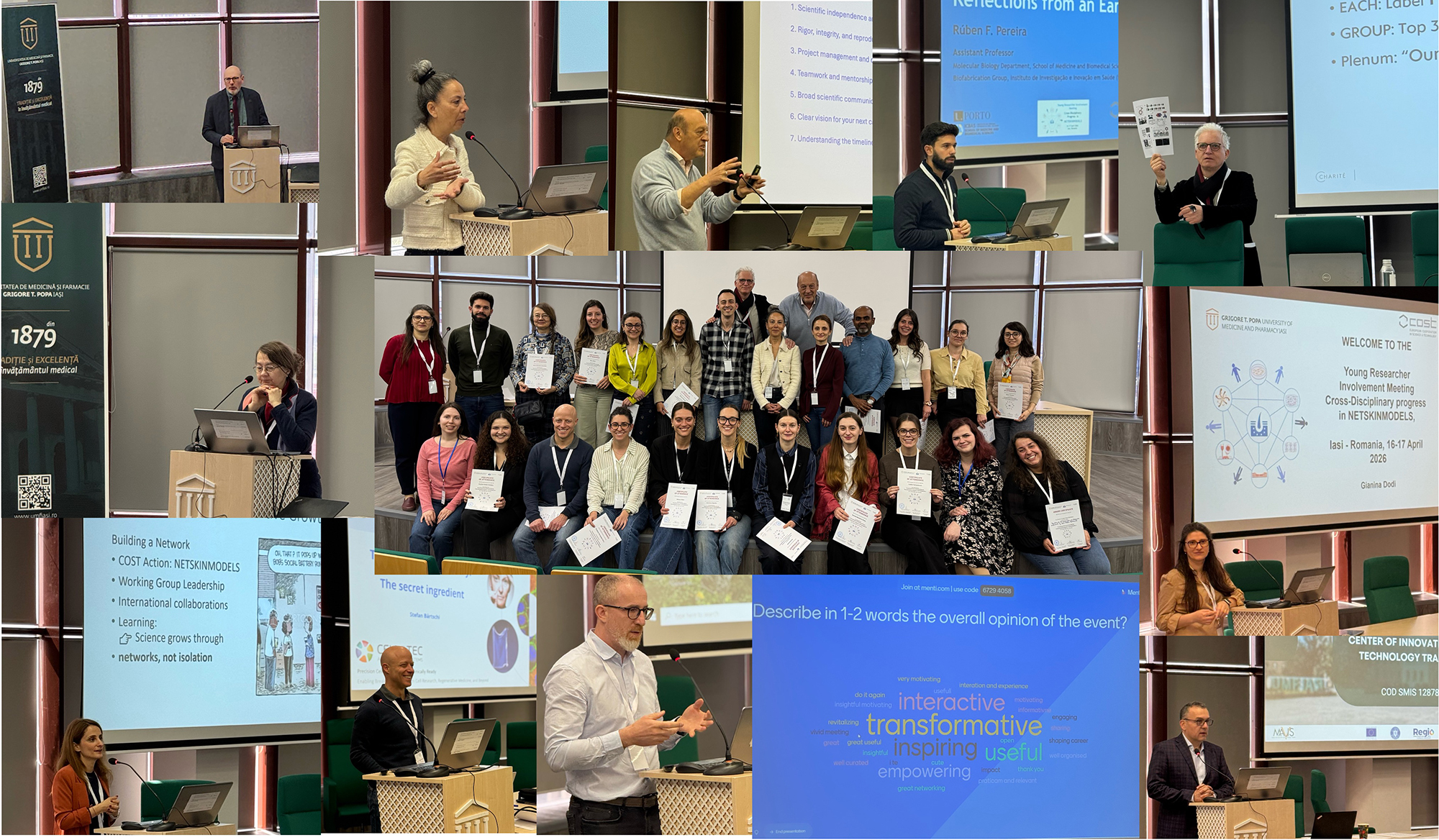 Universitatea de Medicină și Farmacie „Grigore T. Popa” din Iași a găzduit, în perioada 16–17 aprilie 2026, evenimentul internațional Young Researcher Involvement Meeting – Cross-Disciplinary Progress in NETSKINMODELS. Manifestarea a avut loc în Aula „Alexandru Brăescu”, din clădirea „Nicolae Leon”, UMF Iași fiind organizator local al întâlnirii.