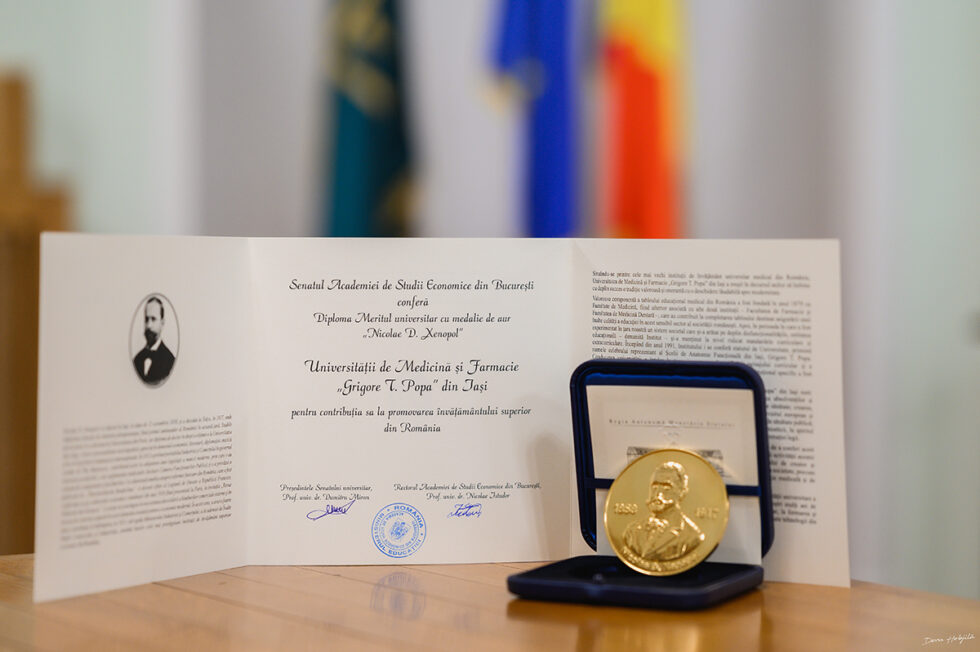 Academia de Studii Economice din București, care sărbătorește zilele acestea 110 ani de la înființare, a premiat marți, 4 aprilie, mai multe instituții de învățământ din țară, printre care și Universitatea de Medicină și Farmacie Grigore T. Popa din Iași, care a primit titlul onorific Meritul universitar cu medalie de aur “Nicolae D. Xenopol”. „Această diplomă reprezintă cea mai înaltă formă de apreciere prin care Academia de Studii Economice din București onorează activitatea organizațiilor care au contribuit la promovarea valorilor învățământului superior din România”, au transmis reprezentanții ASE.